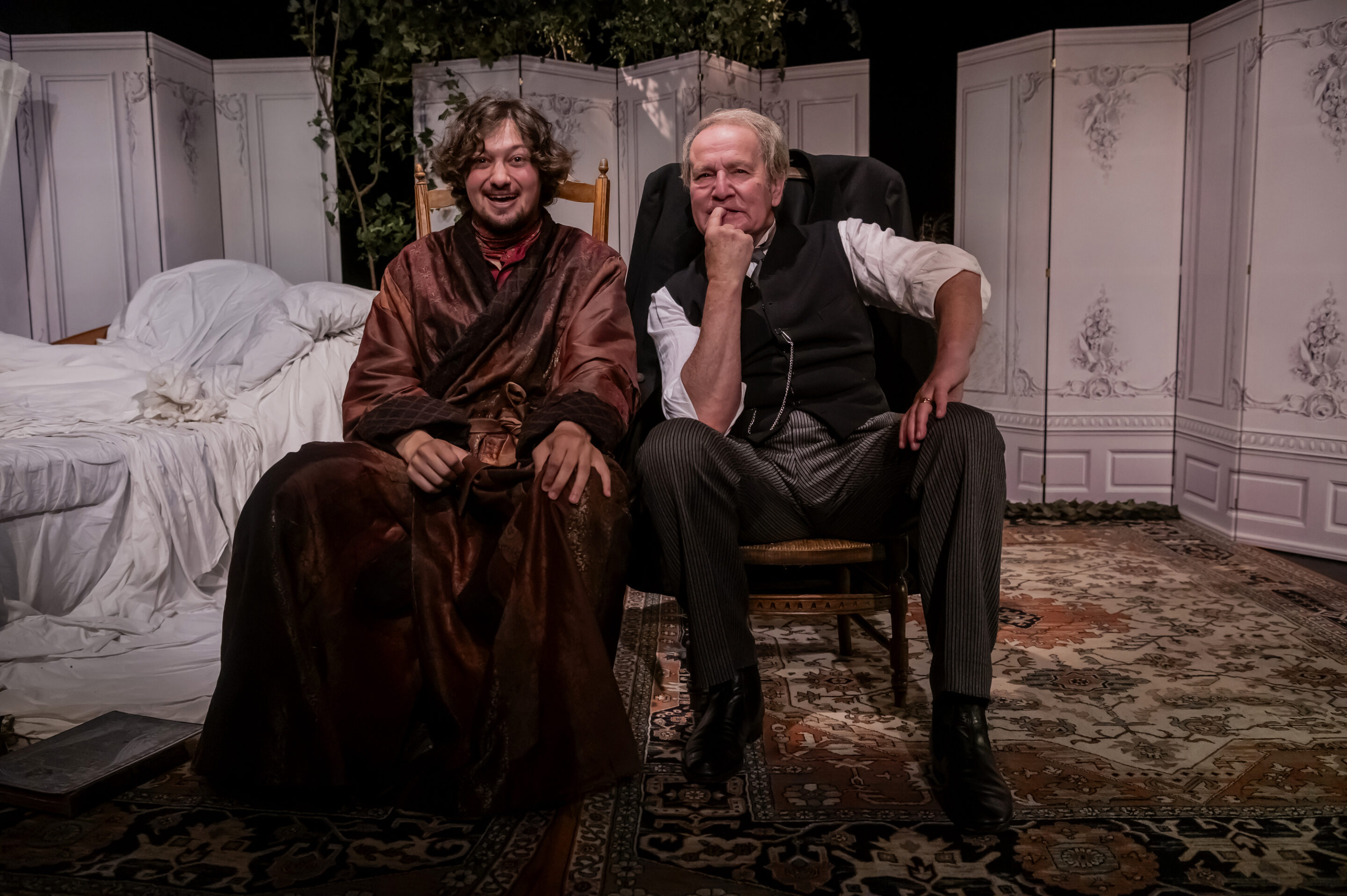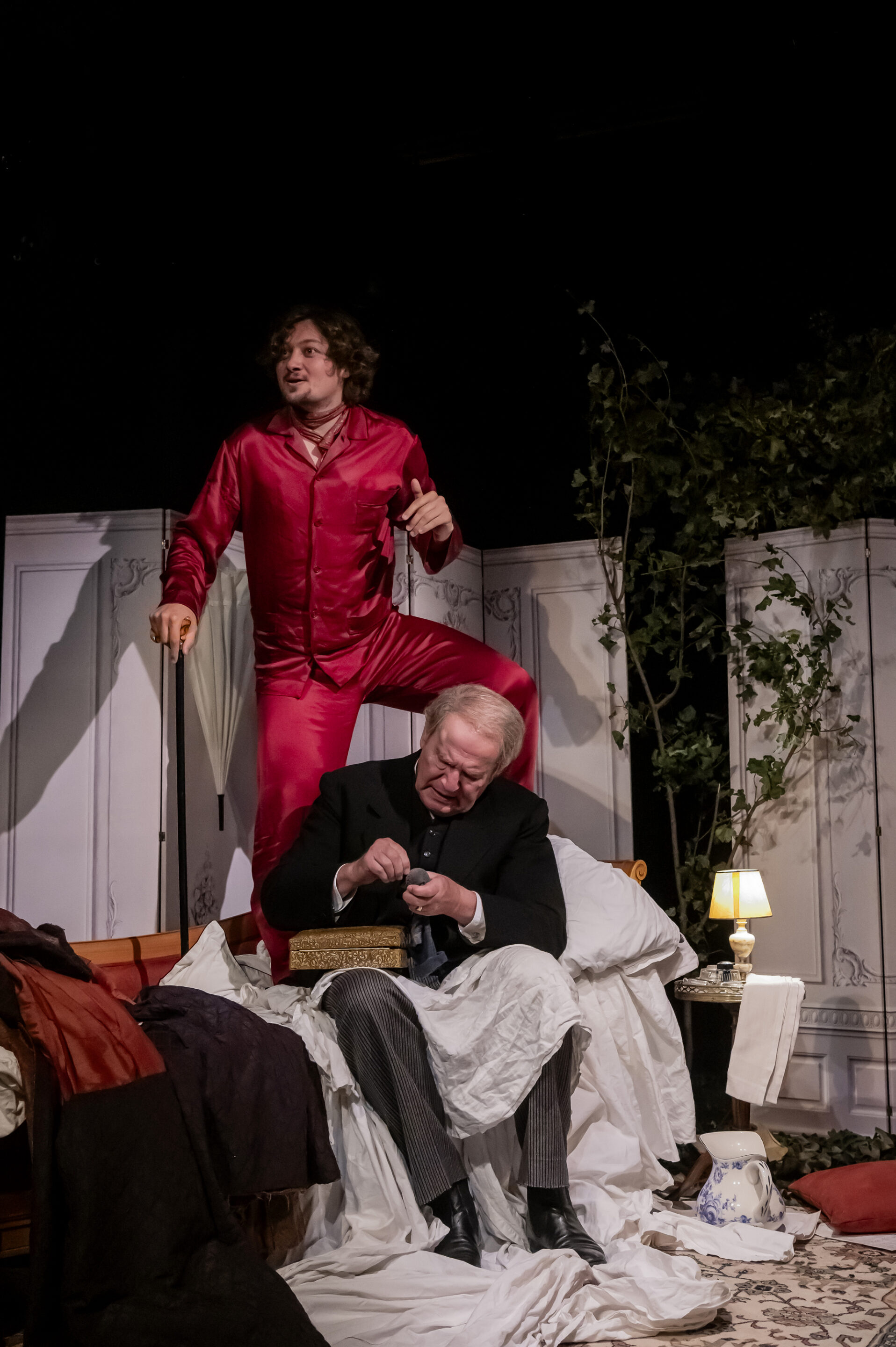 Une savoureuse relation maître-valet au cœur d’une chambre-monde, où le duo est drôle, faussement léger et foncièrement captivant. LM Formentin signe une adaptation sous forme de farce aigre-douce qui saisit toute l’épaisseur tragique de l’homme face au progrès du monde.
